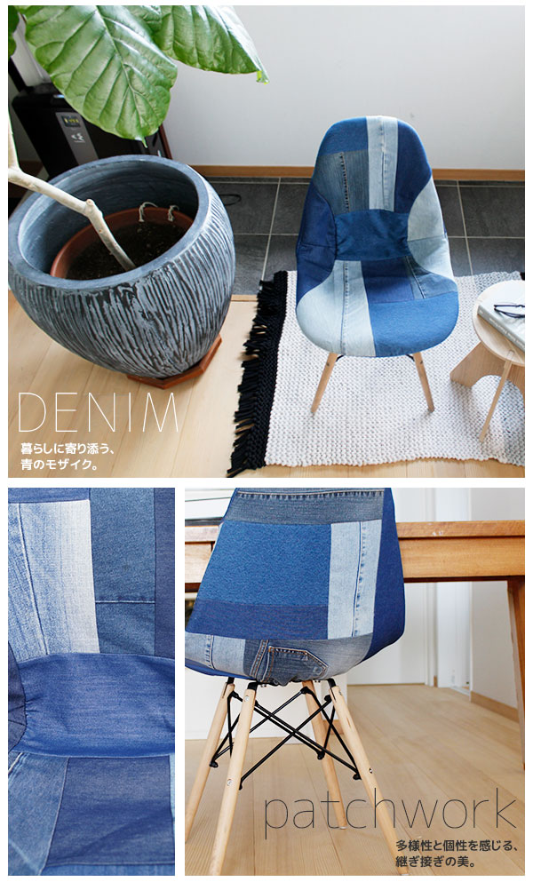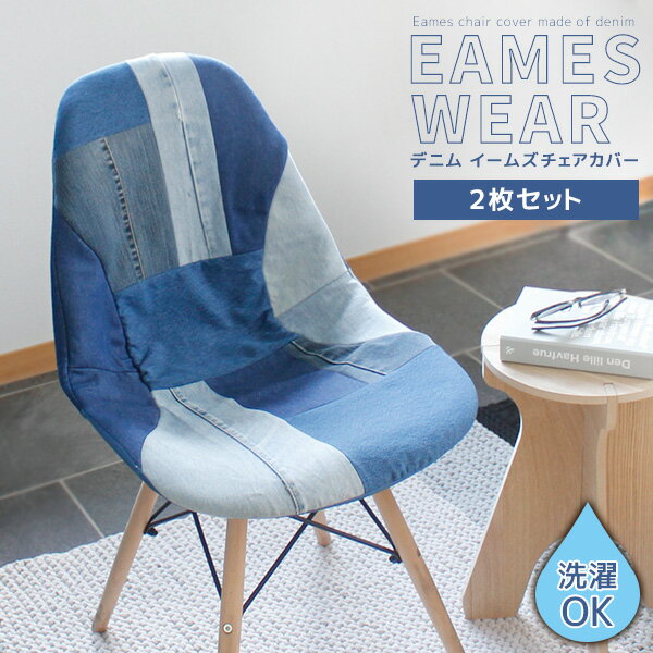 5月1日はワンダフルデ-!当店P5倍!】 【2枚セット】 デニムに衣替え イームズウェアー イームズチェア 専用カバー デニム パッチワーク クッション ファブリック おしゃれ 洗える リプロダクト 椅子